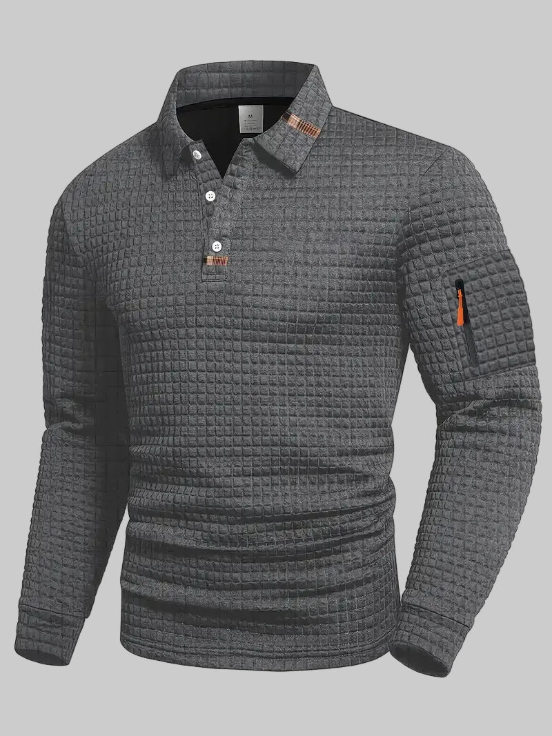Denne langermede poloen kombinerer et raffinert uttrykk med funksjonell komfort. Det diskrete strukturmønsteret gir plagget dybde og karakter, mens den myke, isolerende kvaliteten gjør den ideell for kjøligere dager. En gjennomtenkt mellomting mellom genser og skjorte – perfekt når du ønsker å se velkledd ut uten å gå på kompromiss med komfort.